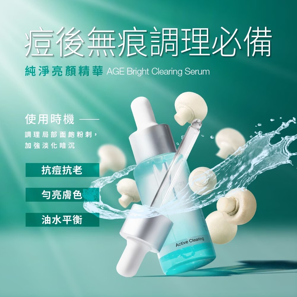 抗痘抗老二合一功效的保濕精華液,針對成人痘痘及其後遺留的過早老化現象如發炎後色素沉澱、粗糙、膚色不均所設計, 專利TT標耙淨痘科技減少暗瘡生成,預防並改善痘痘,賦予肌膚保濕、光滑觸感!