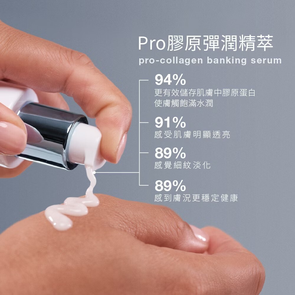 3. 取適量PRO膠原彈潤精萃,用輕柔、向上打圈的方式塗抹在臉及頸部。